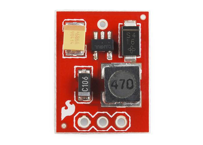 The breakout board includes all of the necessary peripheral components. The input, output and ground pins are broken out on a 0.1" grid to allow easy access on a breadboard.