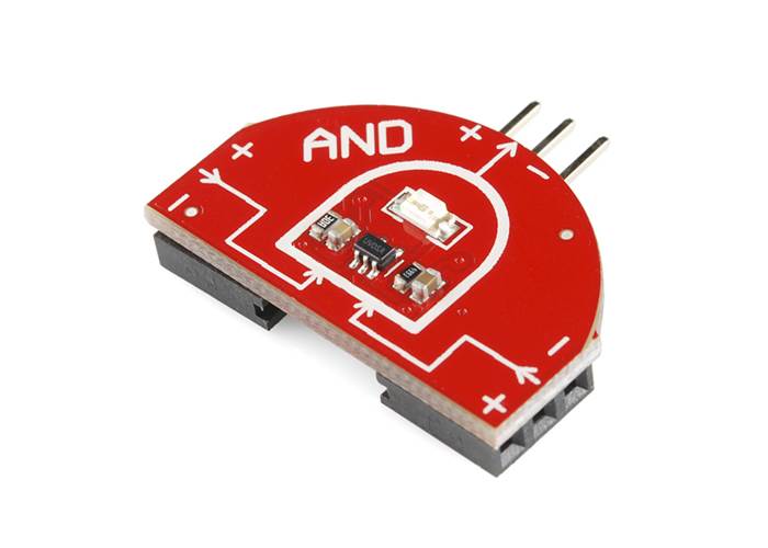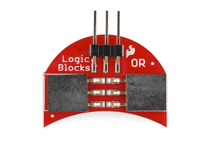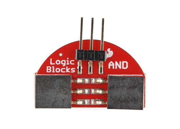 The SparkFun LogicBlocks Kit allows you to play with logic gates by literally plugging one into another and watching the progression of an input to an output! Each LogicBlock represents a different logic function: the NOT block is a simple inverter, where the output is the opposite of the input. The AND block will only output a 1 if both of the inputs are 1. The OR block will output a 1 if either of the inputs are 1. There are also input blocks and splitter blocks.