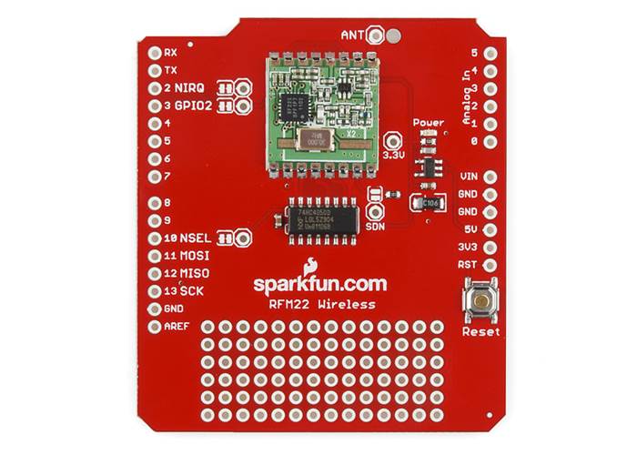 Note: The RFM22 Shield comes as a stand-alone board. Headers and antenna will need to be purchased separately, check the related items or wish list below!