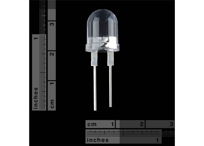 Huge 10mm through hole LEDs. Mood-light an entire wall! Features: 2.1-2.3VDC Forward Voltage 80mA Forward Current 30 degree viewing angle 10,000-12,000 MCD output Documents: Datasheet LED Tutorial