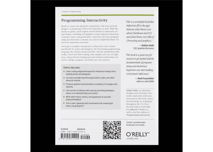 Programming Interactivity is a great new book that covers a wide range of topics. What is different about this book is that it shows hardware geeks like myself that Processing and openFrameworks is not scary - it’s actually quite powerful and easy to use! And for the software person that eats Jav...