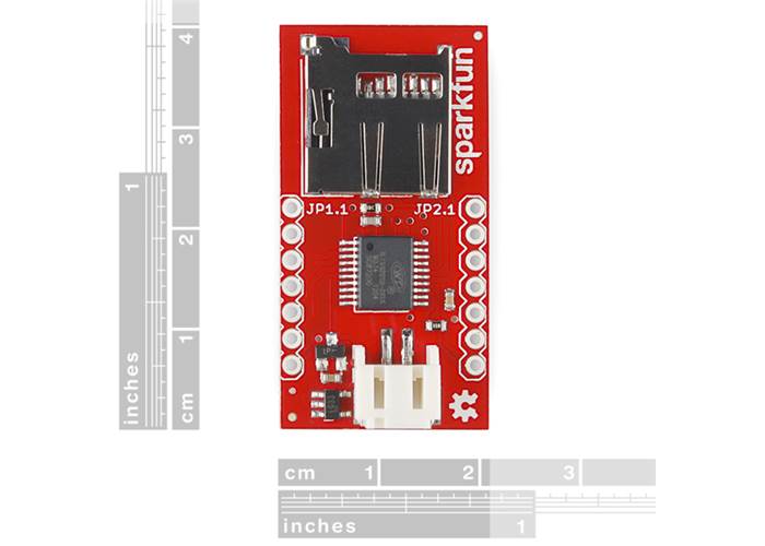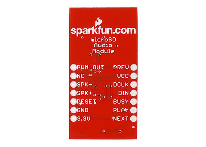 The breakout board includes a battery connector and a micro-SD card slot. Simply load your audio files onto a micro-SD card and plug it in, power up the module and trigger the playback. Playback can be triggered in either key or serial mode: