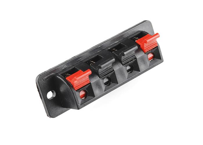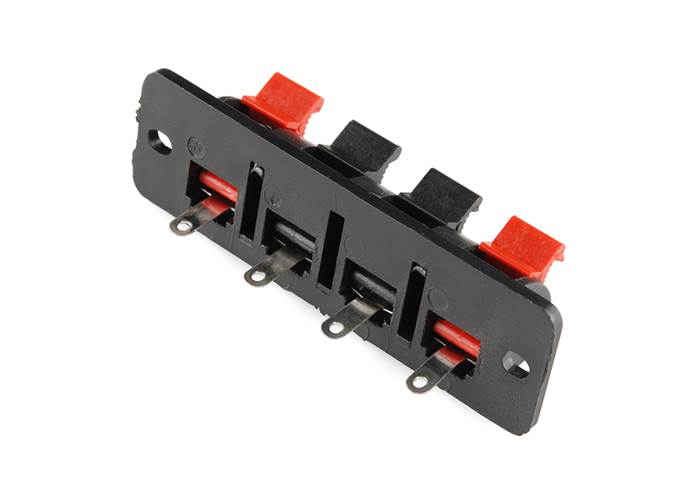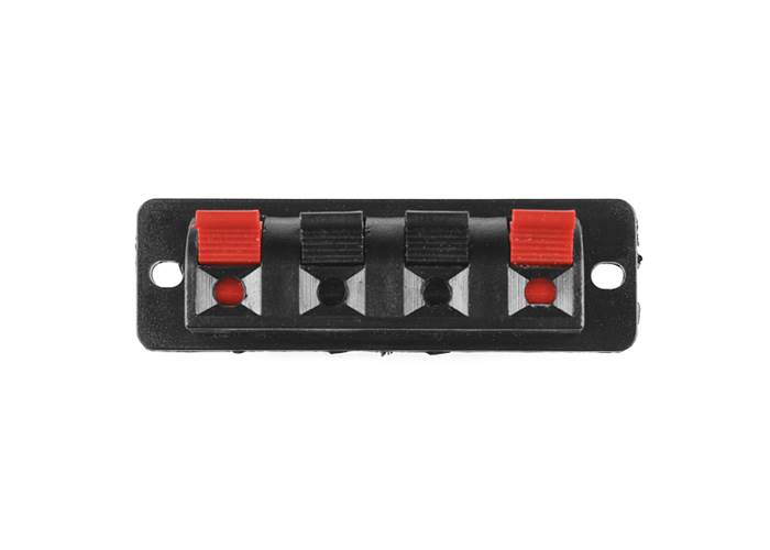 You may recognise these as the connectors that are commonly used for home stereo speakers. They happen to make good spring terminals for most applications! There are 4 separate terminals in all with two mounting holes for panel mounting.