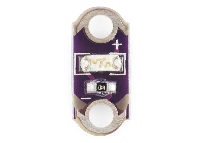 A simple purple LED LilyPad. Light up the night! LilyPad is a wearable e-textile technology developed by Leah Buechley and cooperatively designed by Leah and SparkFun. Each LilyPad was creatively designed to have large connecting pads to allow them to be sewn into clothing.