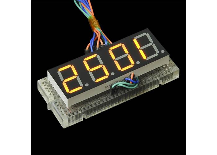 These common-cathode displays feature 4 x 7-segment digits and one decimal point per digit. The LEDs have a forward voltage of 1.9VDC and a max forward current of 20mA.