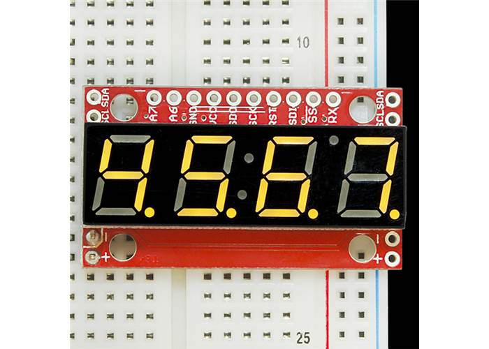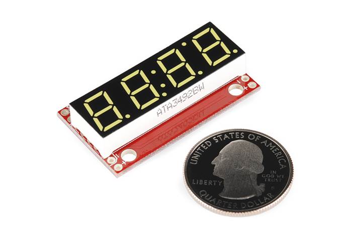 4-digit 7-segment displays are really neat little devices, it’s a shame that they can be so cumbersome to control. Well we’ve solved that problem by making them a little bit “smarter.” The SparkFun 7-Segment Serial Display combines a classic 4-digit 7-segment display and an ATMega328 microcontroller allowing you to control every segment individually using only a few serial lines.