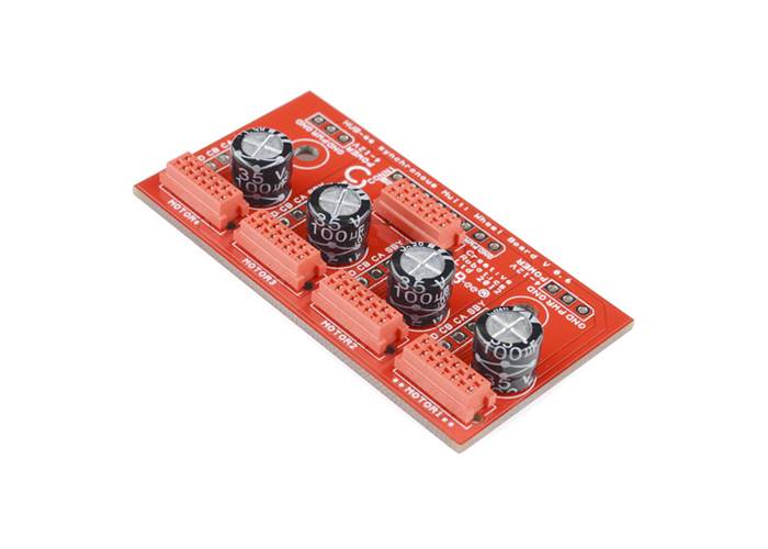 There are a set of power input pins for supplying power and some power capacitors to smooth things out. You can connect it to a controller using a Micro-MaTch connector, or a standard 0.1" pin header.