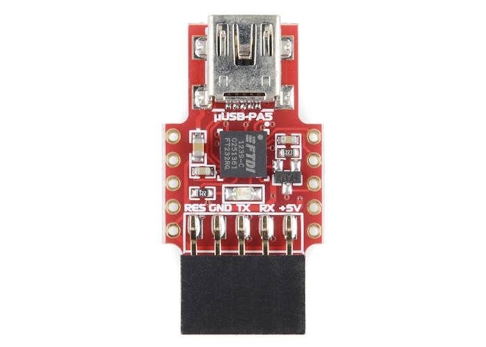 The microUSB Programming Adaptor (μUSB-PA5) is a USB to Serial-TTL UART bridge converter which is very small and easy to use. It uses a mini-B type USB connector to connect to your PC and is based on the FTDI FT232RQ USB to Serial Bridge IC from FTDI.