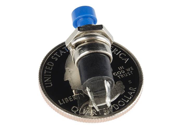 It’s your basic blue action button! This is a very useful, small, panel-mount momentary switch. It is a SPST N.O. with the threaded portion being 6.75mm in diameter. This button is perfect for basic On/Off functions.