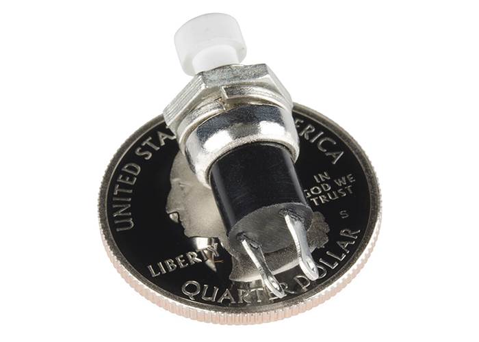 It’s your basic white action button! This is a very useful, small, panel-mount momentary switch. It is a SPST N.O. with the threaded portion being 6.75mm in diameter. This button is perfect for basic On/Off functions.