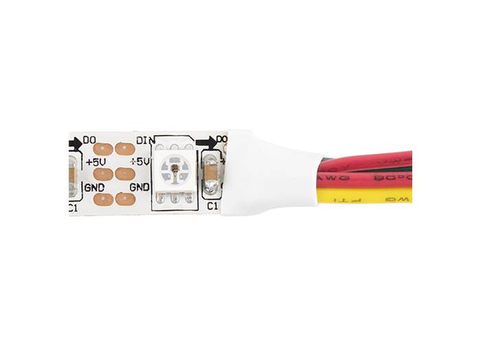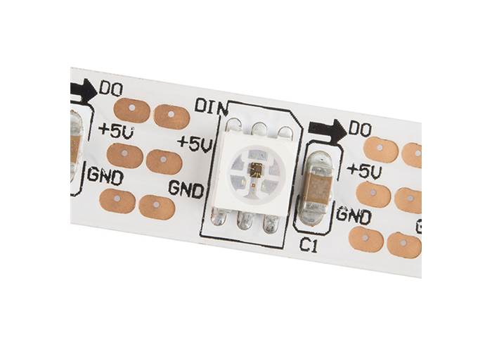 These are bare addressable 1 meter long 5V RGB LED strips that come packed with 60 WS2812s per meter. As these are bare LED strips that have no protective coating, your project won’t be water proof but there is access to each WS2812 LED and each strip length can be easily modified.