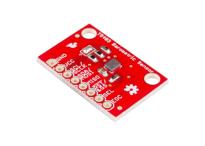 This is the T5403 breakout board, a fully calibrated barometric pressure sensor with an I 2 C interface. The T5403 sensor measures the absolute pressure of the air around. This pressure varies with both the weather and altitude.