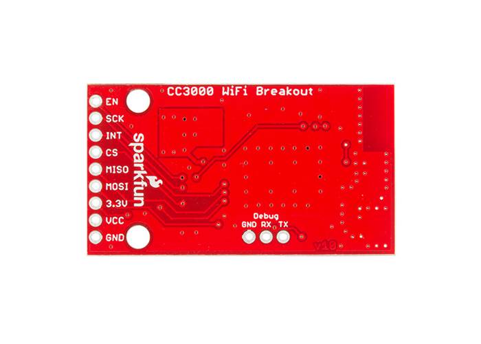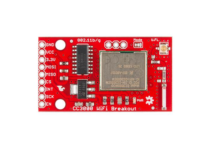 This breakout even provides an optional feature that allows you to attach an external antenna, just in case you need a little extra power. This is a handy feature if you want to route an antenna to the outside of an enclosure or to increase your WiFi gain. We’ve broken out the GND, Vcc, 3.3V, MOSI, MISO, CS, INT, SCK, and EN pins from the CC3000 module to give you easy access to making a great WiFi enabled project.