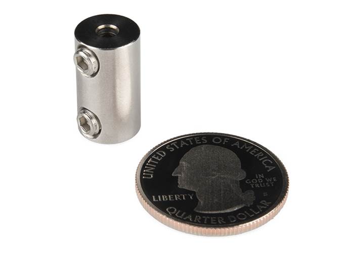 These stainless steel shaft couplers allow you to couple two size shafts together. They can be used for connecting motor shafts to drive shafts, or two different-sized shafts. These shaft couplers have a length of 0.75”, a outer diameter of 0.42”, and couple 1/8” to 1/8" shafts.