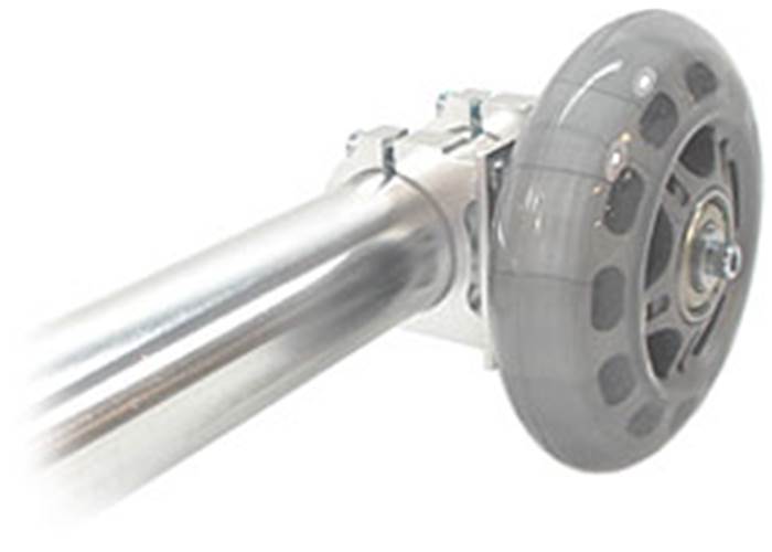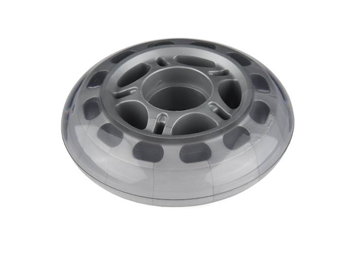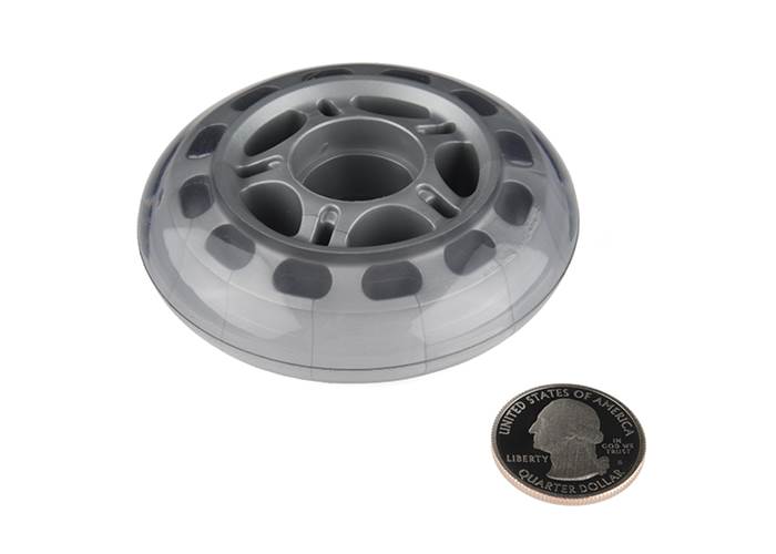 These grey “skate” wheels have an outer diameter of 2.975”, an inner diameter of 0.87”, and a width of 0.94”. When used in conjunction with the skate wheel adapters (check below), you can use them with Actobotics motors and shafts, or use them with standard skate bearings.