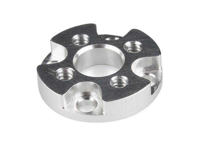 This hub adaptor lets you connect Actobotics parts with a 0.77" hub pattern to parts with a 0.625" hub pattern. The holes for the 0.77" pattern are un-tapped whereas the holes for the 0.625" pattern are tapped.