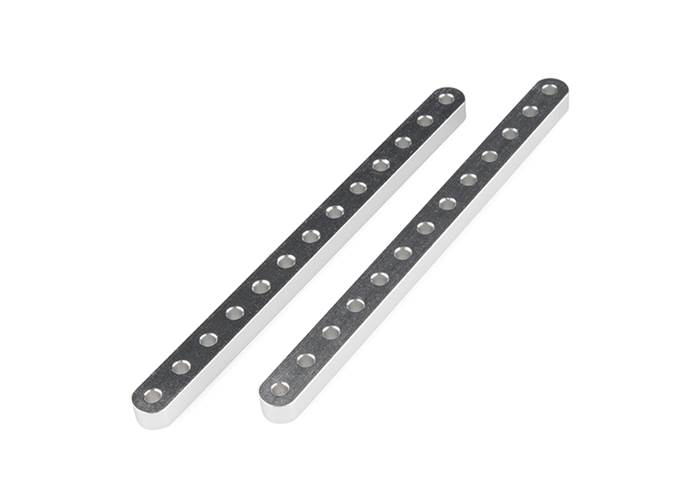 These aluminium beams are great for making unique links and connections in your Actobotics project thanks to 13 thru-holes running its length and are sold in packs of two. Each beam has a length of 4.62", a width of 0.375", a thickness of 0.25", and utilise the 0.77" hub pattern.