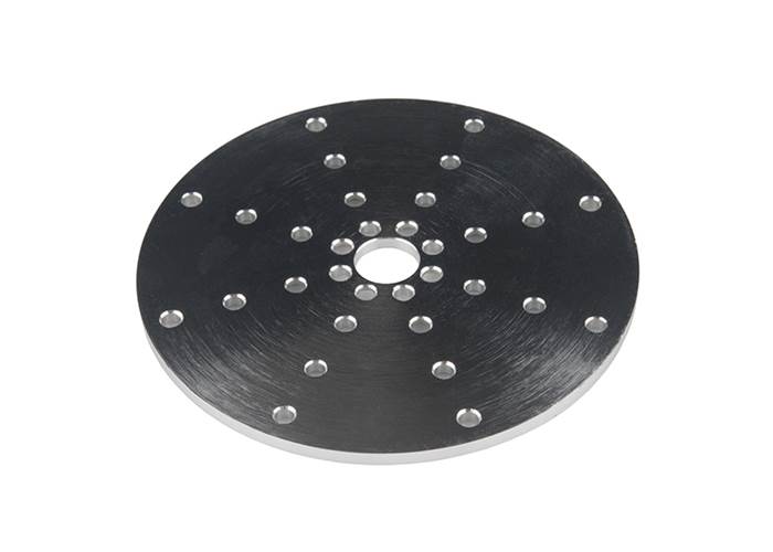 If you need a solid base for your Actobotics project, the round base is perfect. It’s nearly 4" in diameter and 1/8" thick aluminium. It utilizes both the 1.5" and 0.77" hole patterns for connecting hubs, and other Actobotics parts.