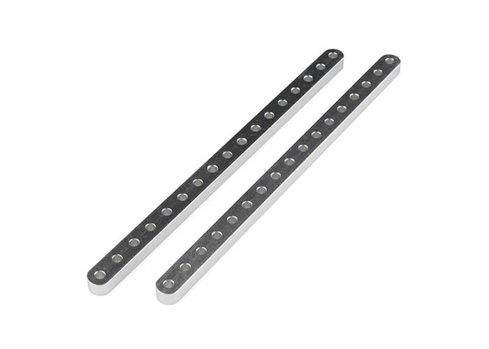 These aluminium beams are great for making unique links and connections in your Actobotics project thanks to 17 thru-holes running its length and are sold in packs of two. Each beam has a length of 6.16", a width of 0.375", a thickness of 0.25", and utilise the 0.77" hub pattern.