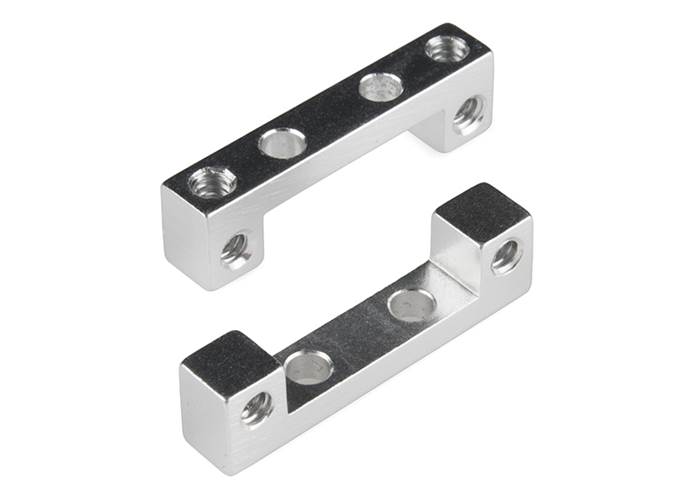 These side mount brackets can function as mounts for endcaps for Actobotics channels. They have two untapped holes spaced 0.44" apart perpendicular to 6-32 tapped holes spaced 1.061" apart.