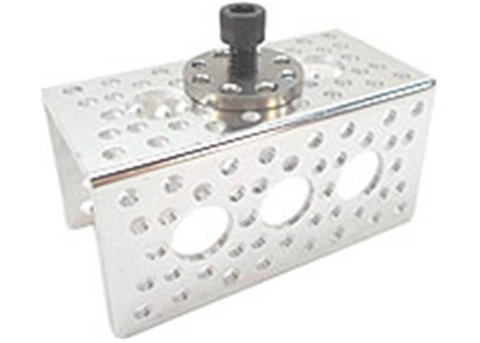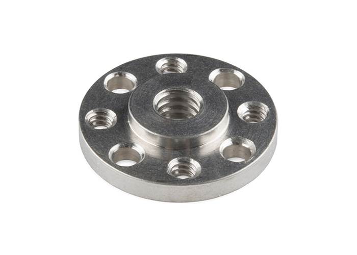 This screw plate gives you the ability to attach a ¼-20 machine screw to Actobotics channels. It has 8 6-32 tapped holes around the edge, and a ¼-20 tapped hole in the centre. It utilizes the 0.77" hole pattern, so it easily attaches to most Actobotics products.
