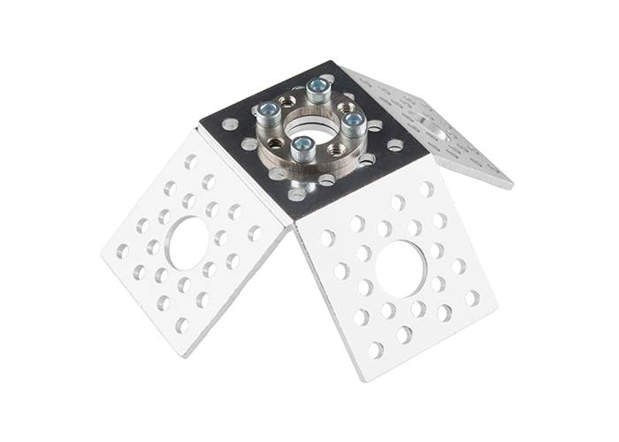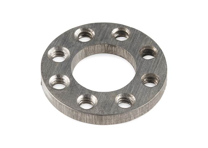 Screw plates make it easy to create a strong joining point between our channel pieces. The round screw plate is nearly 1" around, has 8 6-32 tapped holes, and utilizes the 0.77" hole pattern, which makes it easy to join channels together easily.