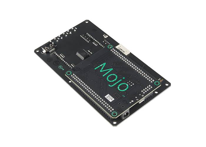 The Mojo Clock/Visualizer Shield is a simple add-on for the Mojo v3 FPGA development platform. This shield’s primary purpose is to give you with a great way to get started with FPGA (Field-Programmable Gate Array) development by providing an easy to set up real-time clock and audio visualizer.