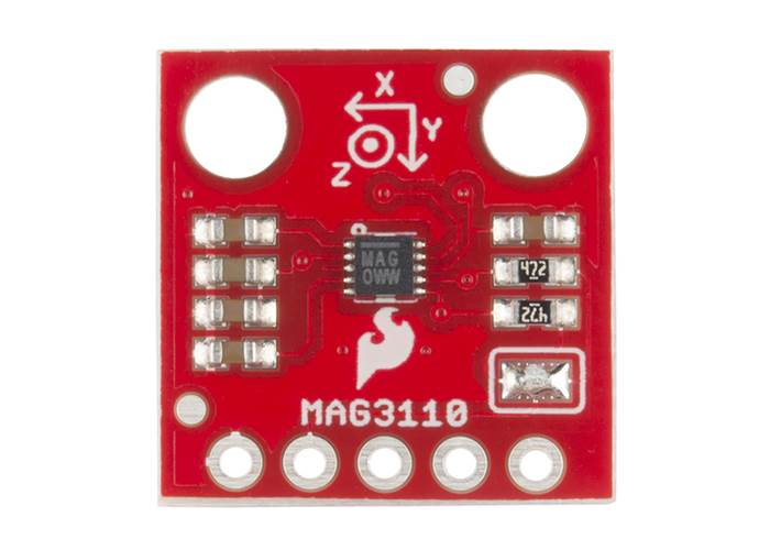 Freescale’s MAG3110 is a small, low-power, digital 3-axis magnetometer. The device can be used in conjunction with a 3-axis accelerometer to produce orientation independent accurate compass heading information. It features a standard I2C serial interface output and smart embedded functions. It’s also a tiny QFN package which isn’t very easy to play with so here is our easy to use breakout board. This board breaks out all of the pins for the MAG3110 to a standard 0.1" header and also supplies the necessary filtering capacitors so that you can easily use it in your next navigation project.