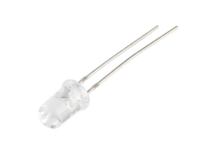 LEDs - those blinky things. A must have for power indication, pin status, opto-electronic sensors, and fun blinky displays. This is a very basic 5mm violet LED. It has a typical forward voltage of 3.0-3.6V and a rated forward current of 30mA.