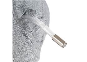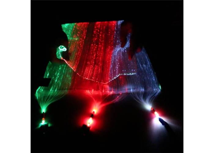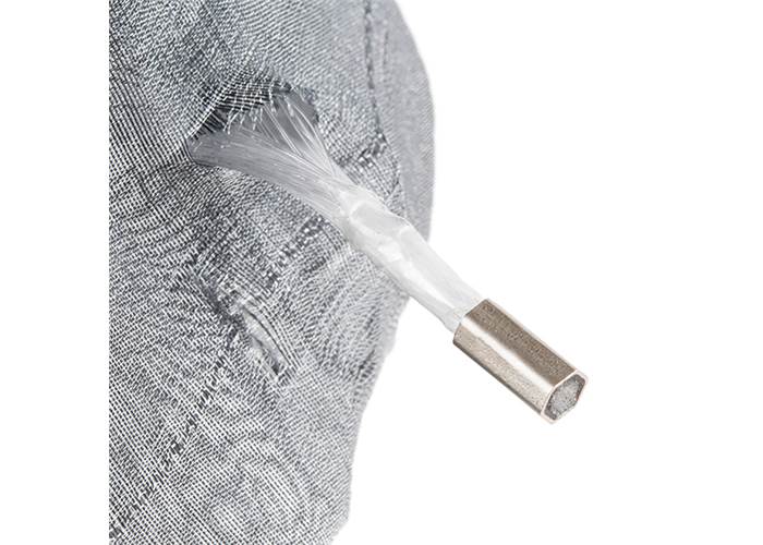 This black fibre optic fabric is a cool and unique way to add some shine to your e-textiles project. There are optical fibers actually woven into this piece of fabric! Simply shine a bright light into the fibre bundle, which is collected at one end, and the fabric fills with little shining pinpoints. You can make the fabric nearly glow with a little bit of abrasion, just rough it up with fine sandpaper to damage the fibre and make it “leak” light. Selective abrasion is a great way to make a pattern!