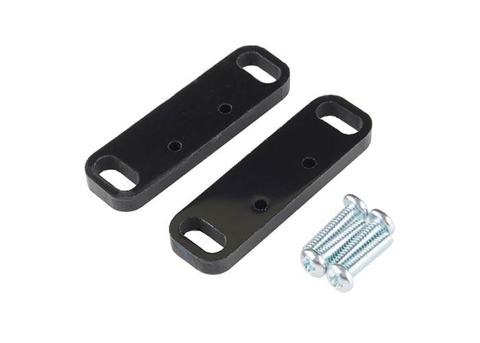 These acrylic mounts are used to attach a miniature microswitches to a slotted surface like an Actobotics channel, making the switch perfect for slide, 3D printer, or robotics projects. Each A type mount features two slots and two screw holes for affixing it to a surface and attaching a mini microswitch to itself.