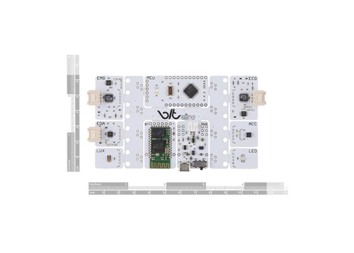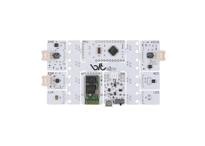 The BITalino is equipped with nine removable “blocks” which can be used straight out-of-the-box and include an MCU, Bluetooth, Power, EMG, EDA, ECG, Accelerometer, LED, and Light Sensor! At the heart of this dev board is the tried and true ATMega328 micro-controller that can be configured with a sampling rate up to 1000Hz and capable of supporting six analogue inputs (four at 10-bit, two at 6-bit), four digital inputs, and four digital outputs. With the attached BC417 Bluetooth module, triaxial MEMS accelerometer, and physiological sensor inputs will find it difficult to run out of ideas for projects.