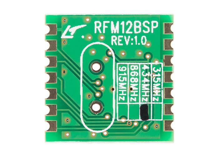 This module has a wide voltage supply range of 2.2-3.8VDC. An SPI interface is used to send data and configure the RFM12 module. The configuration commands, described in the RF12 IC Datasheet linked below, can be used to set the data rate, frequency band, wake-up timer, transfer data, receive data from the 16-bit FIFO, and much more.