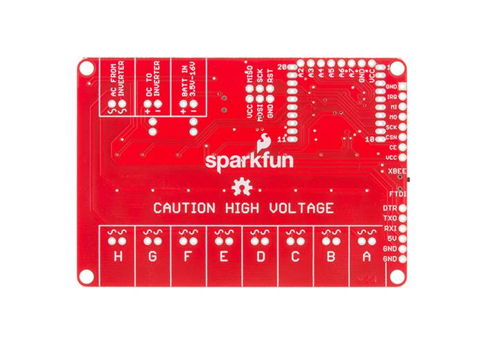 In addition to this board, you will need an inverter (a component that generates the high-voltage AC needed by EL wire), EL wire/tape/panels, and a 5V FTDI BOB or cable to load your own programs. The board also has headers for XBee and NRF24L01+ radio modules for wireless projects. SparkFun carries two inverters, a 3V-input version that can drive a few feet of EL wire, and a 12V-input version capable of driving dozens of feet of EL wire. Choose the one appropriate to your power source and driving requirements. The EL Sequencer possesses zero-crossing optoisolated triacs for noise-free operation and full isolation between the AC and DC sides, and includes a 1.5A adjustable linear regulator to supply regulated DC to an external inverter (not included).