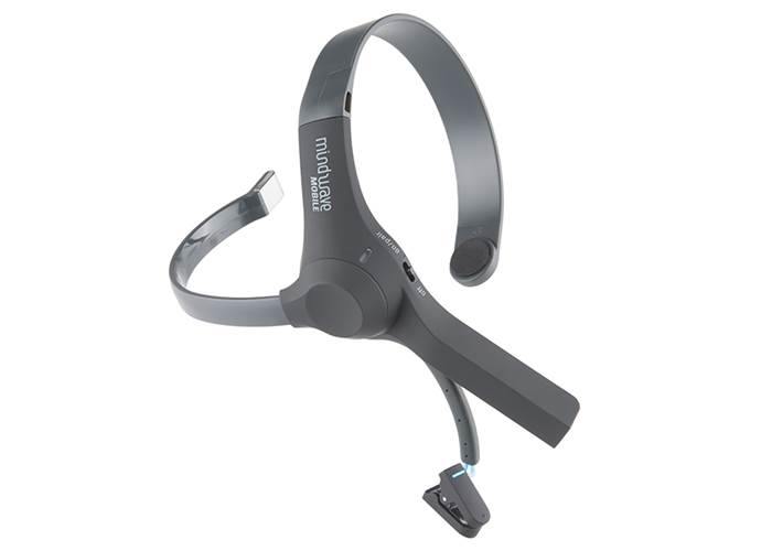 This is the Mindwave Mobile from NeuroSky, an EEG headset that safely measures and transfers the power spectrum (alpha waves, beta waves, etc) data via Bluetooth to wirelessly communicate with your computer, iOS, or Android device.