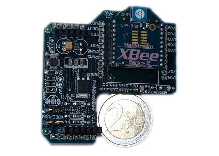 Xbee wireless communication can be easily added to an Arduino Duemilanove USB board or Mega with this shield and on-board Digi (formally MaxStream) Zigbee XBee module capable of 30m indoors or 90m outdoors.