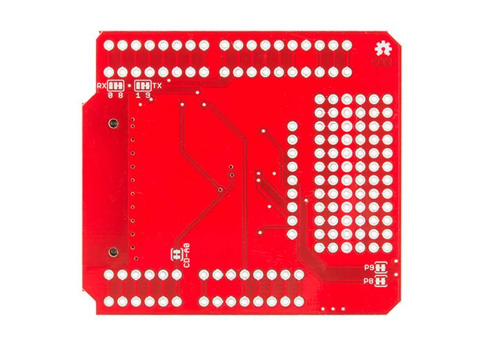 The Shield connects one of the Imp’s UARTs (Imp pins 5 and 7) to either the Arduino hardware UART or a software serial on pins 8 and 9. It defaults to the software serial, but there are jumpers on the bottom side to set it to the hardware serial. A couple imp pins (8 & 9) are also connected to LEDs. They can be disconnected via jumpers on the bottom, if you’d like.