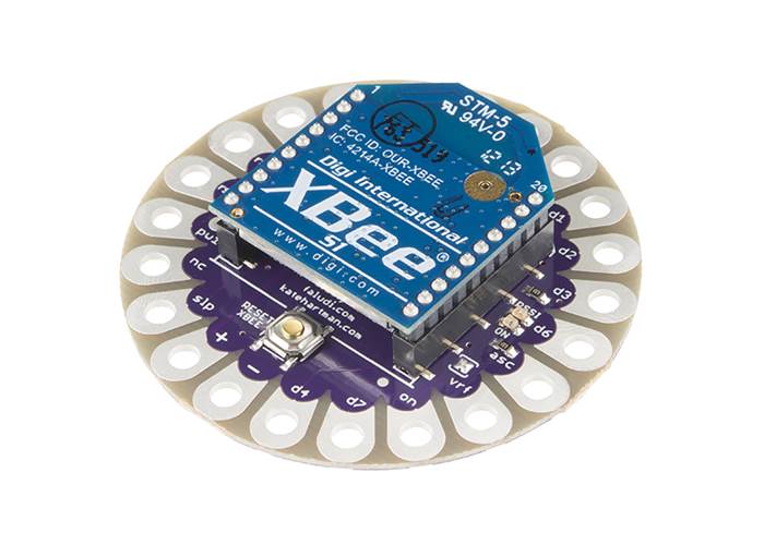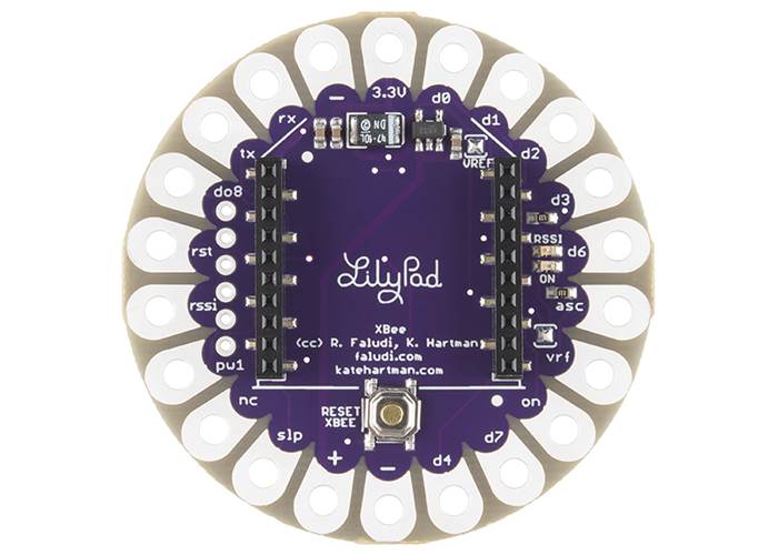 LilyPad XBee was co-developed by Kate Hartman and Rob Faludi. It works with all the popular XBee module types!