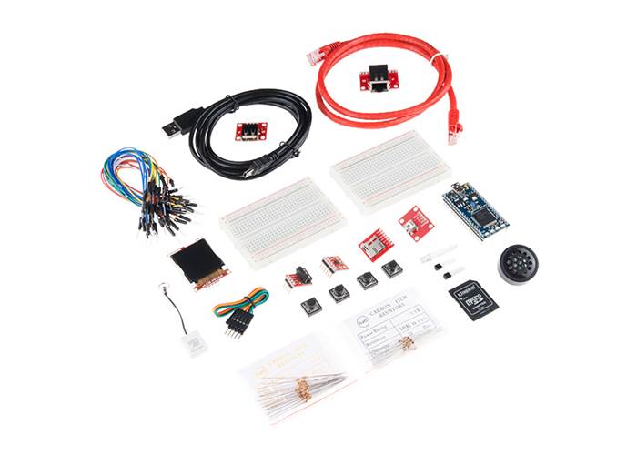 Note: All SparkFun branded breakout boards listed in the Kit Includes section come with headers pre-soldered on.