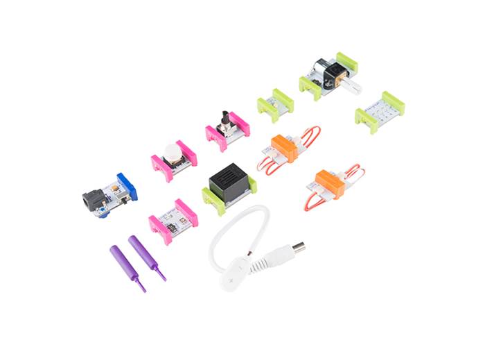 The littleBits Base Kit contains everything you need to get started with designing and creating your own interactive creations.
