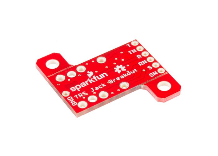 The TRS (tip ring sleeve) jack breakout is a simple board that allows a ¼" stereo audio jack to be soldered on to gain easy access to all of its broken out pins. Makes jack easier to use with breadboards, and labels the connections to cut down on confusion about the normal connections.