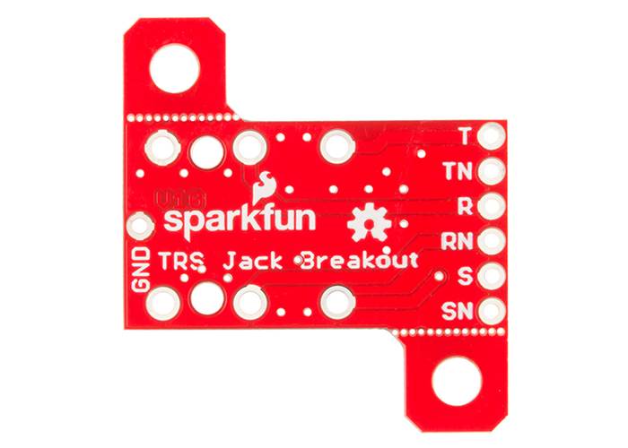 This board breaks out the all the pins you will need to gain access to your TRS jack including GND, T (tip), TN (tip neutral), R (ring), RN (ring neutral), S (sleeve), and SN (sleeve neutral). We’ve also included two mounting holes, which can easily be snapped off if need be, for your basic 4-40 type screw.