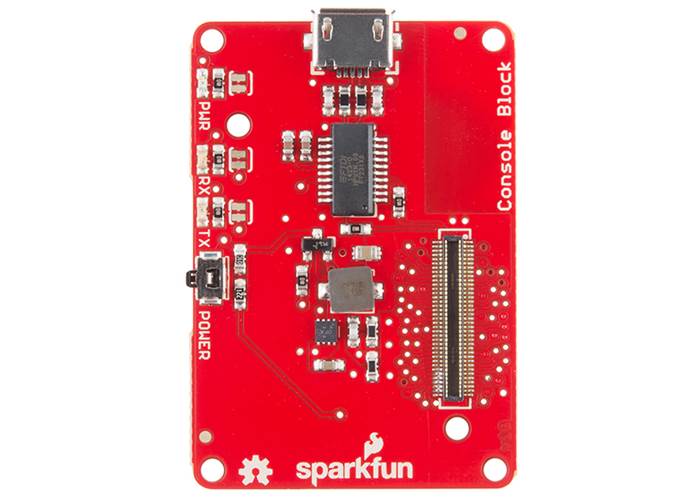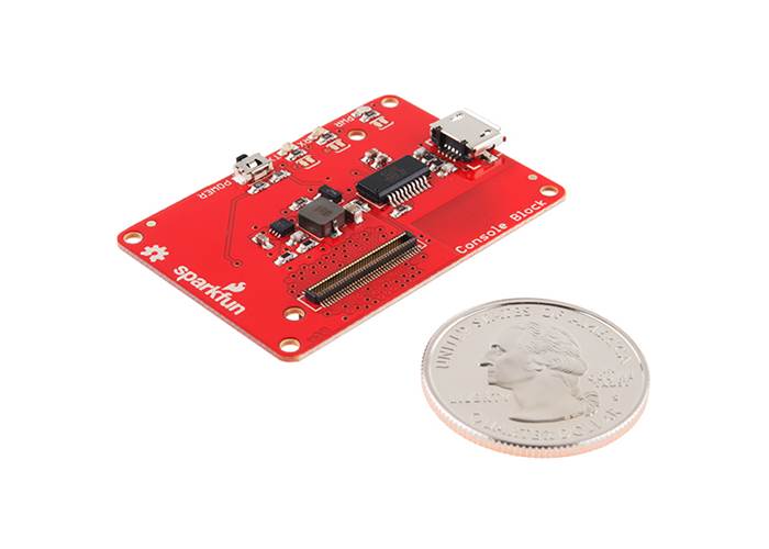 The Console Block is one of the simplest ways to power and communicate with an Intel® Edison. This is a minimal solution to get started using the Intel® Edison. This board can supply 4V and up to 1.5A of current to power the Edison passed through it’s VSYS line and any other expansion boards you may add to your stack. Utilising the FTDI 231X, this creates a USB to serial bridge that is level shifted to the proper 1.8V required by the Edison.