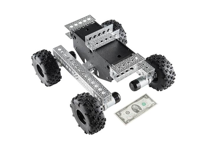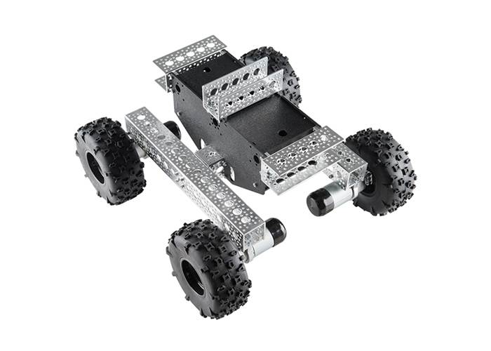 This is the Nomad 4WD Off-Road Chassis kit from Actobotics, a remarkably easy to assemble robotic platform capable of taking you places normal chassis can’t go. What makes this chassis kit great is not only its vast amount of attachment points for various add-ons, but also the fact that it is easily and fully configurable to fit your needs! Do you need the off-road wheels a different distance apart from one another? Do you need to switch out a motor due to damage or situational requirements? Do you need a different type of channel or panel attached to the main body for more attachment points? All of this can be done with a simple hex key and a few minutes.
