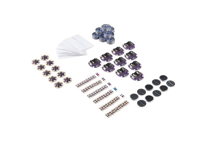 SparkFun packages everything educators need to get started with this platform in a number of varieties that fit different classroom settings and populations. The hardware boards, thread, needles, batteries and extra parts come pre-packaged for your convenience. This specific Lab Pack includes everything for up to 10 people need to start sewing some colour into different articles of clothing.