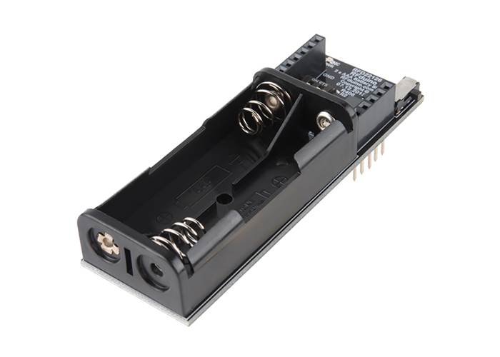 The Dual AAA Battery Shield is also equipped with a power switch and a step-up switching regulator which allows the batteries to be drained down to low voltages while still providing a stable 3.3V to your RFduino.