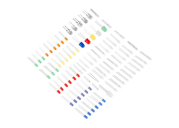 This is the SparkFun LED Starter Kit, an ultimate assortment of LEDs packed into a single red box! Now, this isn’t a box filled with only one type of LED, oh no. Inside each kit you will find over 70 multi-coloured and multi-functional LEDs and even more resistors to help hook everything up.
