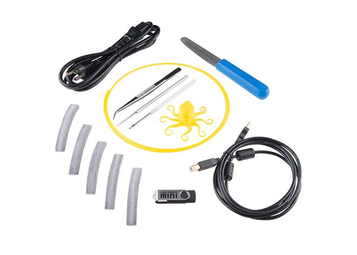 Note: The LulzBot Mini does NOT include filament beyond the 1 meter HIPS sample. Check the Recommended Products section below for tons of filament options!