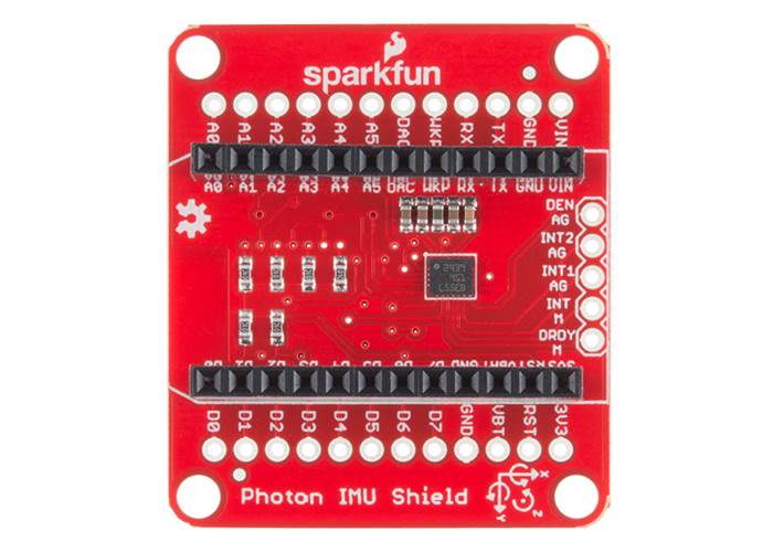 This is the SparkFun Photon IMU Shield, a versatile motion-sensing add-on board for your Photon device. Each IMU shield is equipped with an on-board LSM9DS1 system-in-a-chip that houses a 3-axis accelerometer, 3-axis gyroscope, and 3-axis magnetometer.