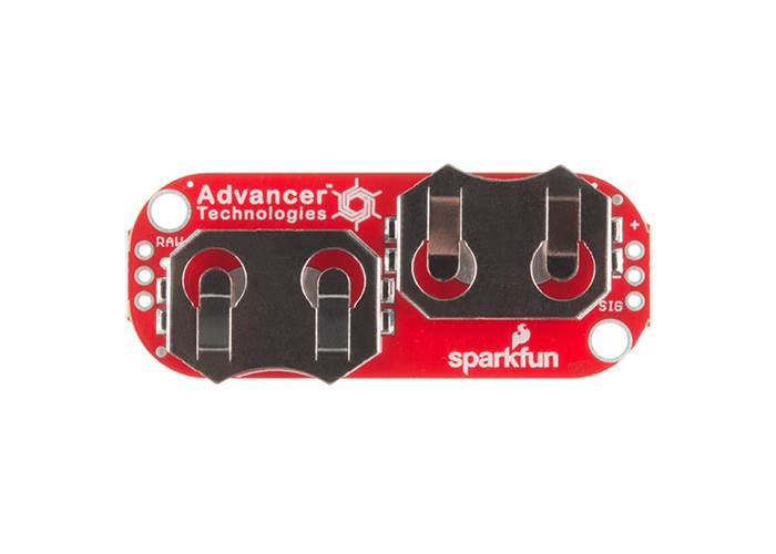The MyoWare Power Shield is designed to take two standard CR2032 coin cell batteries to power the MyoWare Muscle Sensor. We have made this board in a way that the coin cell batteries are connected in parallel for extended capacity at a nominal 3.0V.